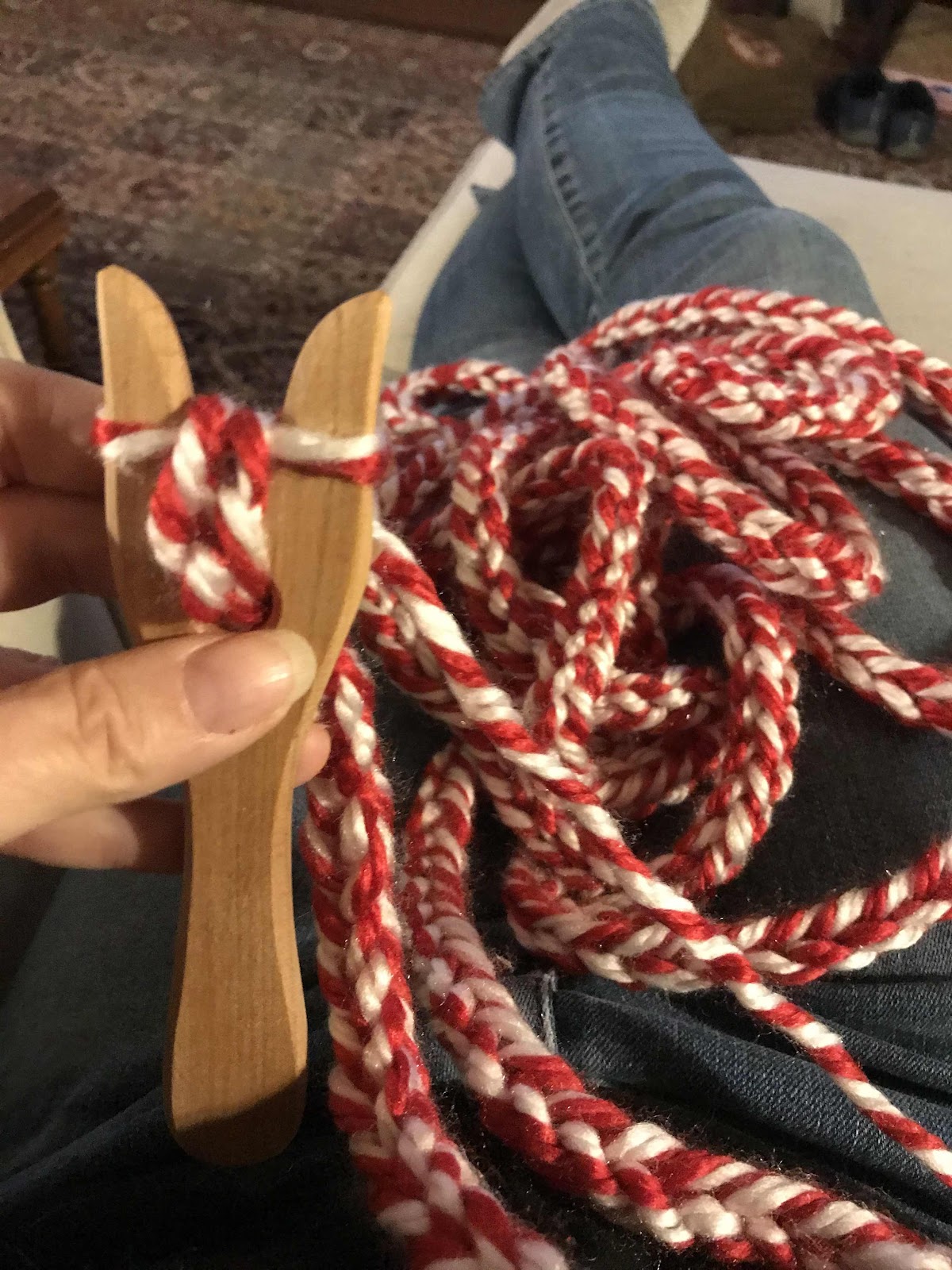 With the changing of the weather (LA goes from 80s and sunny to 50s and rainy pretty much overnight, and always right around now) I’m keen to throw myself back into my knitting projects. I’ve been using this tool called a lucet - a medieval braiding tool - to make a tree garland; next I need to get off my duff and try knitting the boys hats, which is scary because it’s a whole new skill set I don’t have yet (so far I’ve only made scarves and wash cloths).